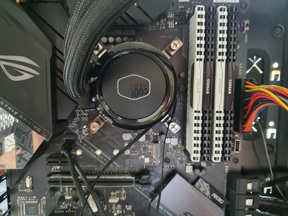 My CPU liquid cooling system arrived today, and I thought it would take me an hour to install it but instead it took me around 4 hours lol, and that’s because I had to strip the computer to re-organize everything. I replaced my CPU air cooler to a Cooler Master Liquid ML360R system.